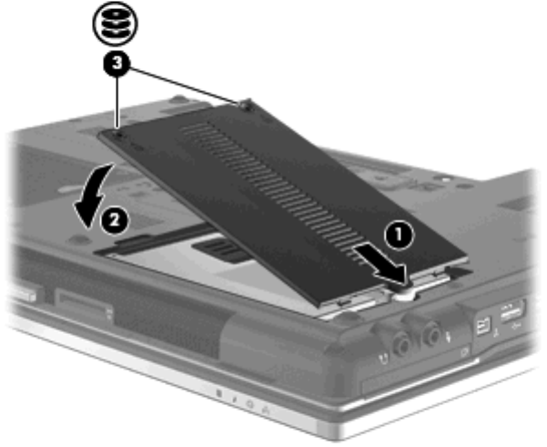6. Draai de schroeven van het afdekplaatje van de vaste schijf vast (3).