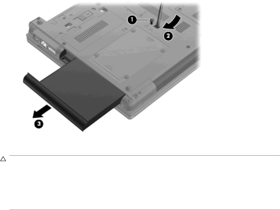 7. Duw met een platte schroevendraaier voorzichtig tegen het lipje om de optischeschijfeenheid te