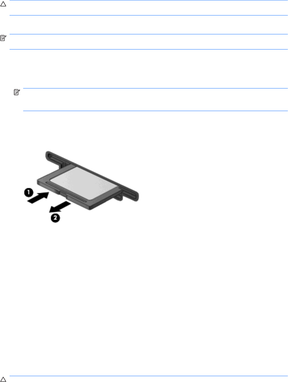 VOORZICHTIG: Plaats een PC Card niet in een ExpressCard-slot, om beschadiging van de computer