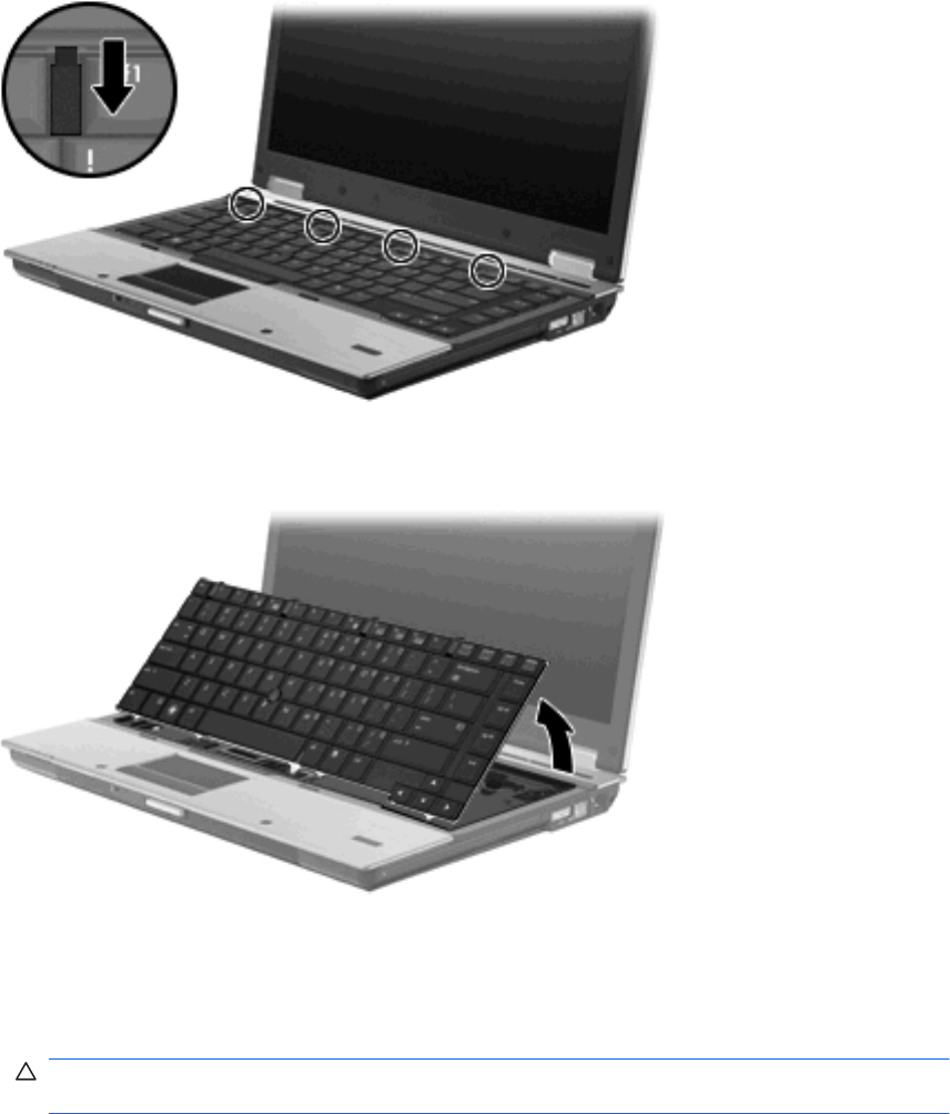 10. Til voorzichtig de bovenste rand van het toetsenbord op en kantel het toetsenbord totdat het op de