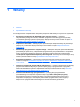 Źródło informacji Zawartość Bezpieczeństwo i komfort pracy ● Prawidłowe przygotowanie stanowiska pracy Aby uzyskać dostęp do tego podręcznika: ● Wskazówki dotyczące prawidłowej postawy oraz nawyków pracy, które zwiększają wygodę pracy i zmniejszają zagrożenie dla zdrowia ● Informacje dotyczące bezpieczeństwa elektrycznego i mechanicznego Wybierz kolejno Start > Pomoc i obsługa techniczna > Instrukcje obsługi — lub — otwórz stronę http://www.hp.com/ergo.
