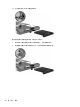 7. 将塑料卡舌 (2) 向笔记本计算机的中心拖动,将硬盘驱动器与连接器连接。
