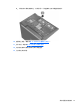 a. 将笔记本计算机底部朝上,松开笔记本计算机底部的键盘螺钉 (1)。
