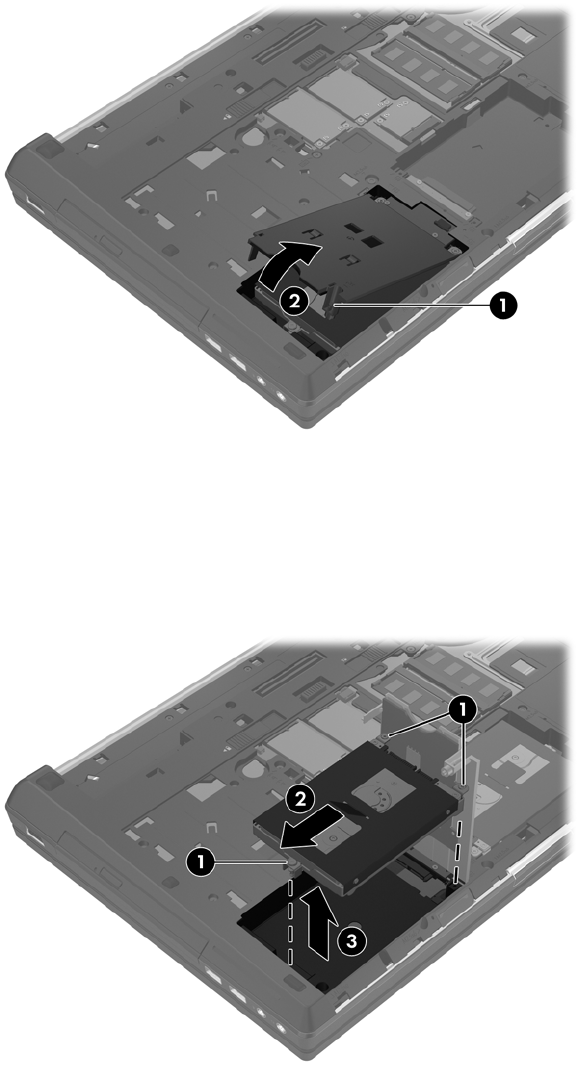 10. Използвайте пластмасовия палец, за да повдигнете твърдия диск (3) и да го извадите от