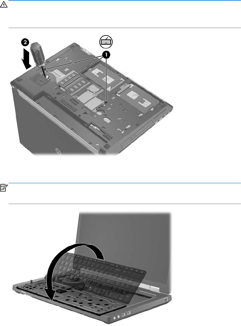 а. При обърнат компютър с дъното нагоре, развийте винтовете на клавиатурата (1) от