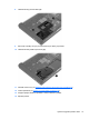 8. Zatáhněte za výstupek pevného disku (3) směrem vzhůru a poté disk vytáhněte z počítače.