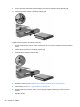 7. Zatáhněte za plastovou příchytku (2) směrem ke středu počítače a zapojte tím pevný disk do
