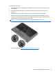 9. Align the tabs on the hard drive door (1) with the notches on the computer.