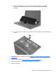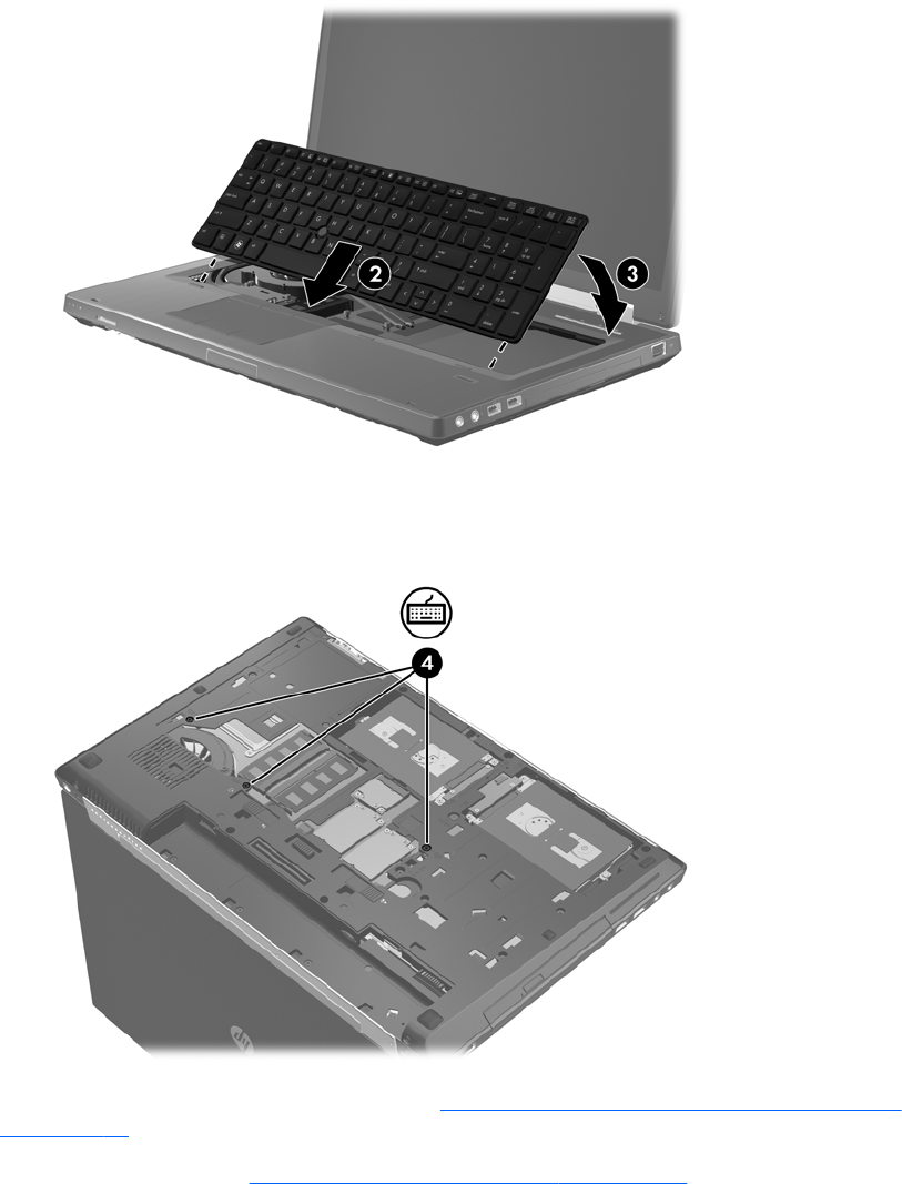 d. Vire o computador ao contrário e, em seguida, aperte os 3 parafusos do teclado (4) para o
