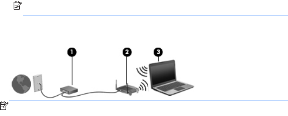 Ilustracija prikazuje primjer instalacije bežične mreže povezane s internetom.