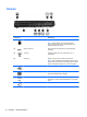 RJ-45-jack (nätverk) Ansluter en nätverkskabel.