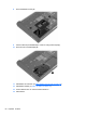 7. Dra plastfliken (2) mot mitten av datorn så att hårddisken ansluts till kontakten.