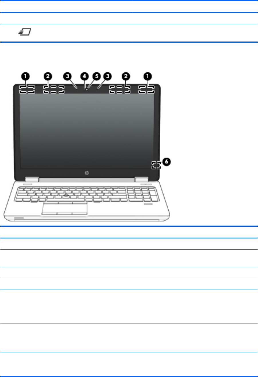 (1) WLAN 天線* 傳送及接收無線訊號,以和無線區域網路 (WLAN) 通訊。
