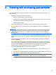 Remove all discs and all external media cards, such as memory cards, from the computer.