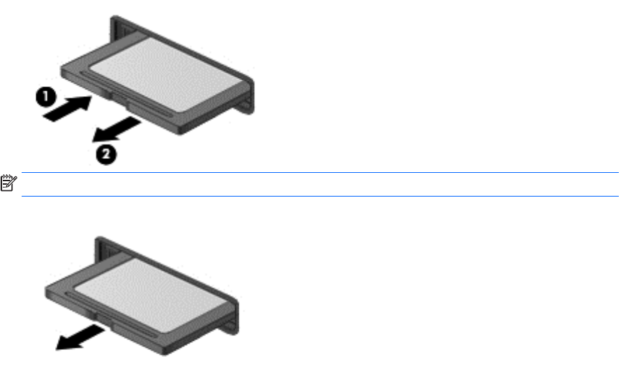3. Tekan kartu ke dalam (1), lalu keluarkan dari slot (2).