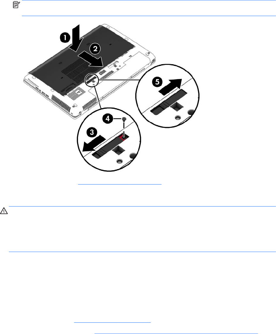 tempat. Geser cantelan pelepas ke kanan untuk mengunci penutup akses (5).