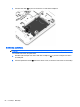 4. Pavērsiet akumulatora nodalījumu pret sevi, pabīdiet apkopes vāka fiksatoru pa kreisi (3) un, ja