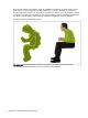 GREŞIT Nu sprijiniţi palmele pe suprafaţa de lucru şi nu îndoiţi încheieturile prea mult în jos. GREŞIT Nu îndoiţi încheieturile prea mult spre interior. Urmaţi aceste îndrumări privind suprafaţa de lucru: ● Aşezaţi tastatura direct în faţă pentru a evita răsucirea gâtului şi a bustului. ● Reglaţi înălţimea suprafeţei de lucru pentru confortul umerilor, braţelor, încheieturilor şi mâinilor. Umerii trebuie să fie relaxaţi şi coatele trebuie să atârne confortabil în părţi.