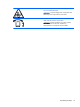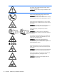 Følgende tabel indeholder de sikkerhedsikoner, der kan forekomme på HP-udstyr. Se i denne tabel