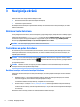 3 Navigācija ekrānā Datora ekrānā varat navigēt tālāk norādītajos veidos. ● Skāriena žestu lietošana (tikai atsevišķiem modeļiem) ● Tastatūras un peles lietošana Atsevišķiem datora modeļiem ir īpaši darbības taustiņi vai tastatūras karsto taustiņu funkcijas, lai veiktu ikdienas uzdevumus. Skāriena žestu lietošana Varat pielāgot skāriena žestus, mainot iestatījumus, pogu konfigurācijas, klikšķa ātrumu un rādītāja opcijas.