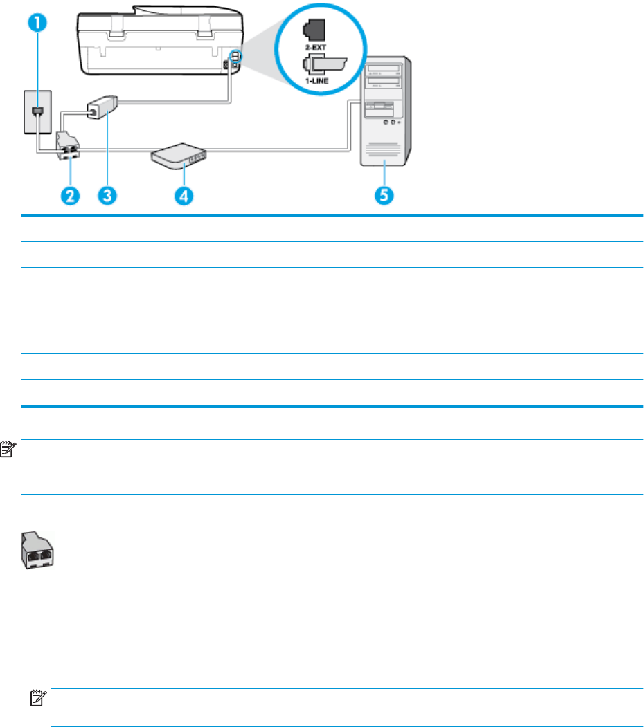 và hai cổng RJ-11 ở phía sau. Không sử dụng bộ chia điện thoại 2 đường dây, bộ chia nối tiếp hay bộ