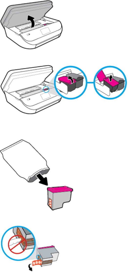 b. Mở chốt trên khe hộp mực. Và sau đó lấy hộp mực ra khỏi khe.