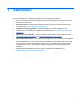 Index A administratörslösenord 33 ansluta till ett WLAN 12 antivirusprogram 33 använda energibesparande lägen 25 nätström 28 användarlösenord 33 avstängning 25 B batteri låga batterinivåer 27 spara ström 28 urladdning 27 visa återstående laddning 27 batteriinformation, hitta 27 batterikontroll 27 batteriström 26 BIOS ta reda på version 41 uppdatera 41 Bluetooth-enhet 10, 15 brandväggsprogramvara 33 C certifieringsinformation för trådlöst 8 D dockningskontakt, identifiera 7 driftsmiljö 45 48 Index 8 H HP
