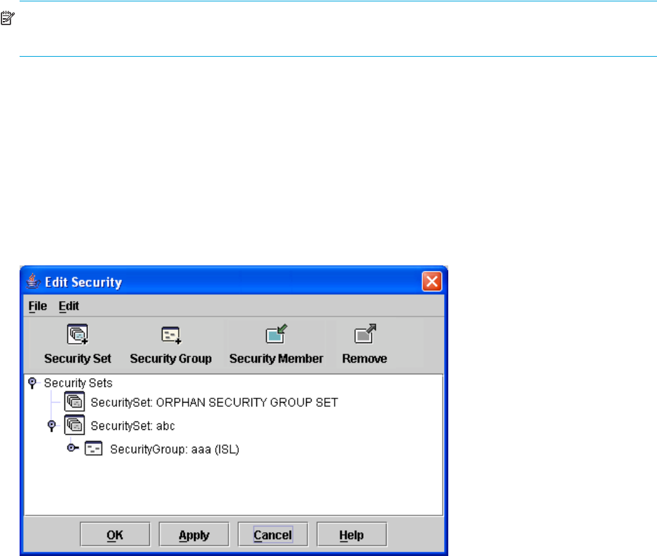 groups, and members. The Security dialogs are available only on a secure SSL fabric and on the entry