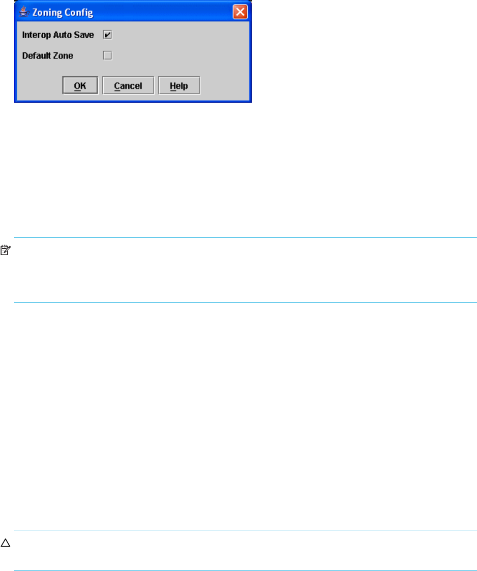 Use the Zoning Config dialog to change the Interop Auto Save and Default Zone configuration