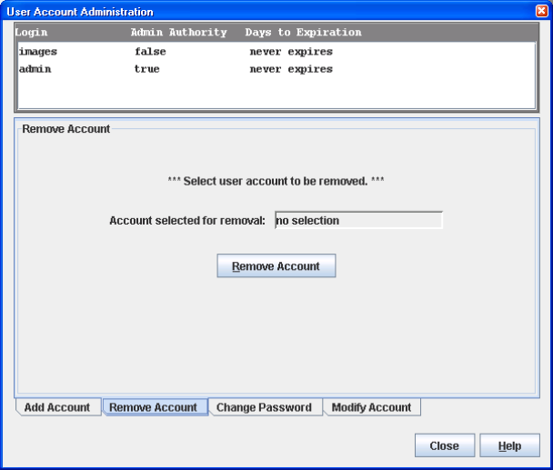 Figure 19 User Account Administration Dialog – Remove Account tab page