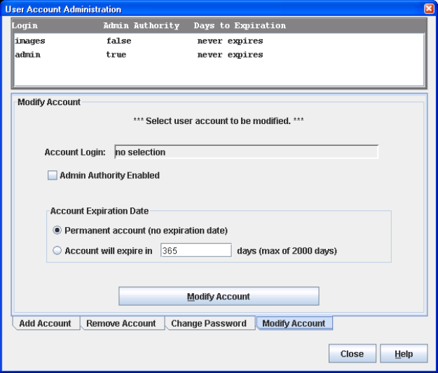 Figure 21 User Account Administration dialog - Modify Account tab page