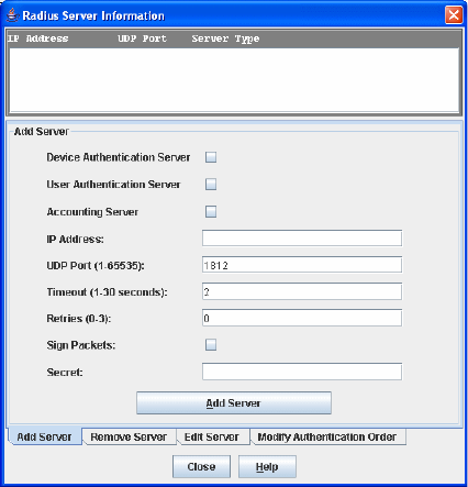 2. Click the Add Server tab in the Radius Server Information dialog shown in Figure 22.
