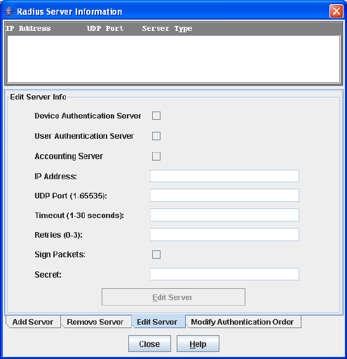 Figure 24 RADIUS Server Information dialog—Edit Server tab page