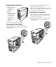 Replacing the Side Panel 1 Slide the side panel forward on the frame until it locks into place. 2 Align the thumbscrews on the side panel with the holes on the back of the chassis frame, and then tighten the thumbscrews on the side panel. 3 See “After Closing the PC” on page 2. 1 Locate the three small tabs attached to the front panel on the side of the chassis. 2 Press each tab away from the center of the chassis. Press the top, the middle, and the bottom tab, and then gently remove the front panel.