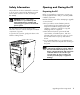 Before Opening the PC To avoid injury and equipment damage, always follow this procedure in this order before opening the PC: 1 Remove any diskette or optical disc (CD or DVD) from the PC. 2 Click the Start button on the taskbar. Click Turn Off Computer and then click Turn Off again. 3 Disconnect the modem/telephone cable, if present. 3 Reconnect external devices. 4 Turn on the PC and all peripherals such as the monitor.