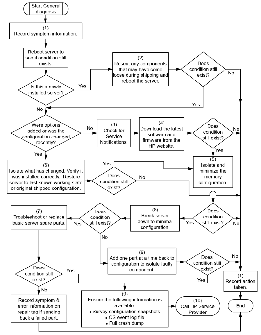 Server power-on problems flowchart