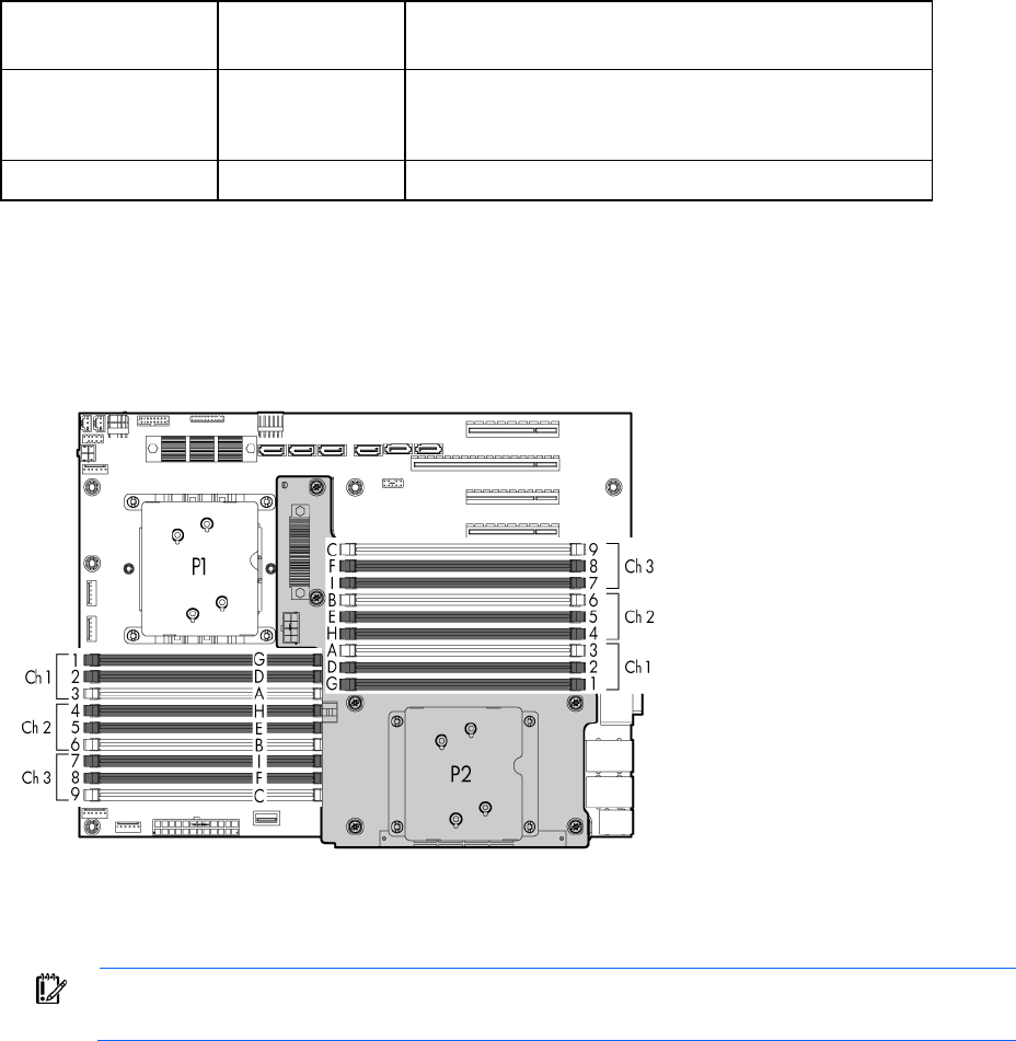 DIMM slots are numbered sequentially (1 through 9) for each processor. The supported AMP modes use the