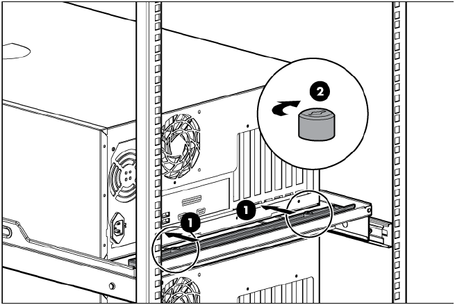 6. Slide the locking bracket forward, and then tighten the thumbscrews.