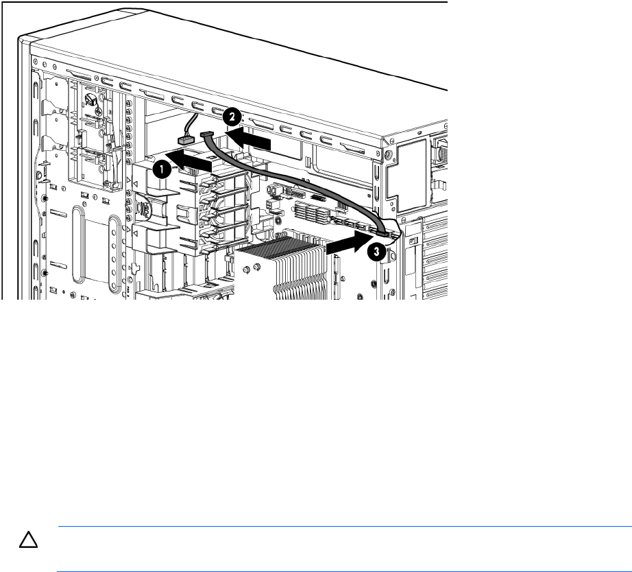 9. Connect the optical drive cable to the rear of the optical drive and to the SATA connector on the system