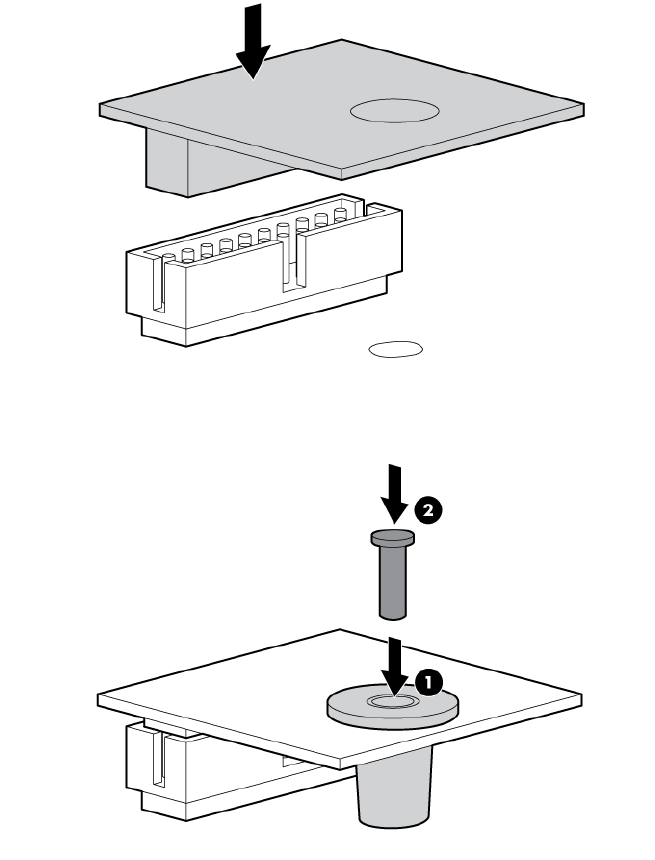 7. Install the TPM board. Press down on the connector to seat the board ("System board components" on