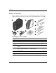 Setting Up What’s in the Box? Before setting up your projector, be sure your shipping box includes the following items. If the shipping box does not contain any of the following items, contact HP. Identifying the contents of the box Symbol 8 Item Function 1 2 3 4 Carrying case Carries and protects projector. Documentation CD Contains projector documentation. Projector with lens cap Displays images. Remote control and two AAA batteries Control projector.
