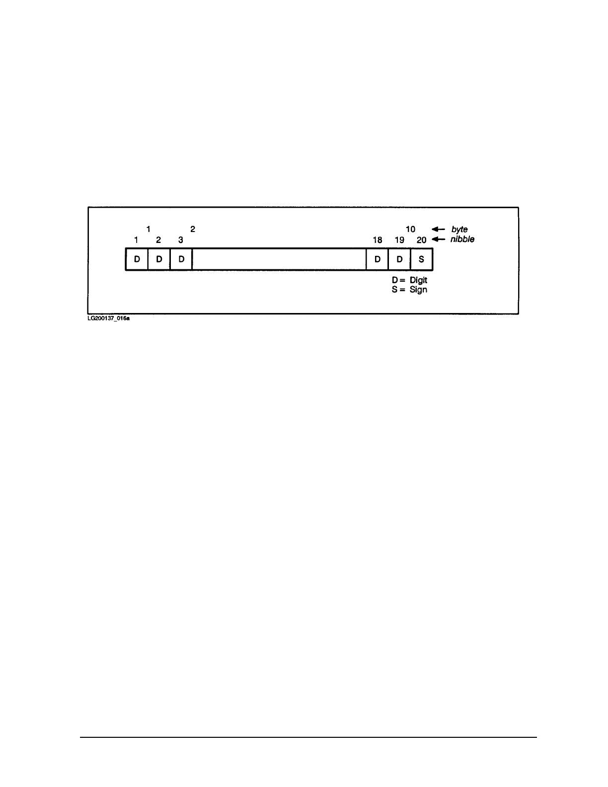 This would be declared in COBOL II as 19 digits plus a sign or 20 nibbles (P20 in the