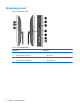 Sidokomponenter Bild 1-3 Sidokomponenter Tabell 1-2 Sidokomponenter 4 Komponent Komponent 1 Utmatningsknapp för optisk diskenhet 6 HP 5-i-1 mediekortläsare (tillval) 2 Aktivitetslampa för optisk enhet 7 USB 3.0-port 3 Fackladdad optisk diskenhet 8 USB 3.