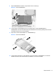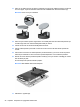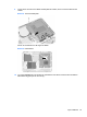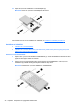 10. Tryck på metallklämman som sticker upp på batteriets ena sida för att lossa det från hållaren.