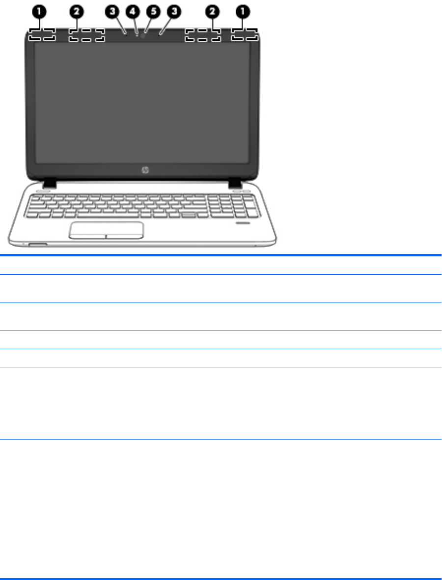 (1) WLAN antennas (2)* (select products only) Send and receive wireless signals to communicate with wireless local