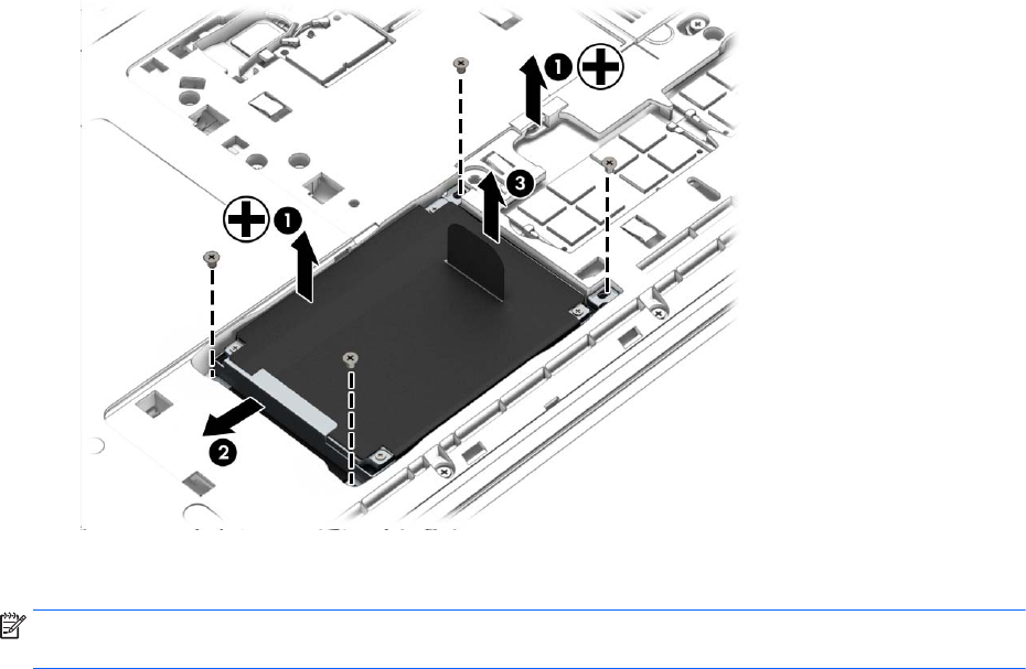 8. Τραβήξτε την πλαστική γλωττίδα (3) για να βγάλετε τη μονάδα σκληρού δίσκου από τη θέση
