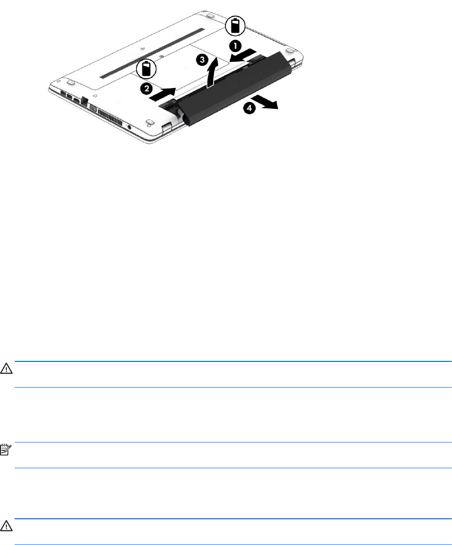 3. Kallutage akut ülespoole (3) ja eemaldage see arvutist (4).
