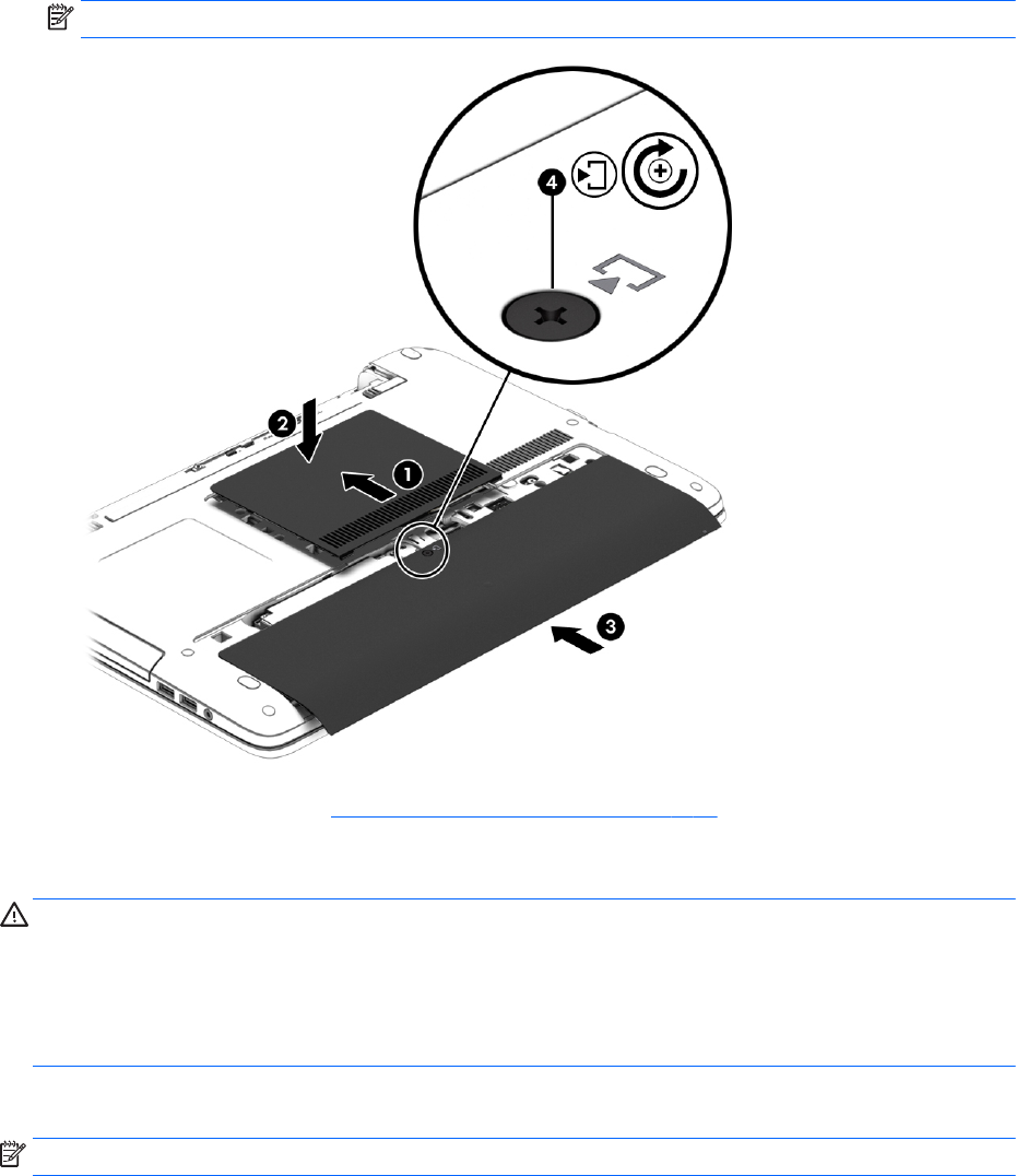 3. Lükake suuremat hooldusluuki akusahtli poole (3), kuni see paika klõpsatab.