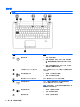 USB 2.0 連接埠(兩個) 連接選用的 USB 裝置,例如鍵盤、滑鼠、外接式磁碟