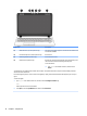 (2) USB 2.0 ports (2) Connect an optional USB device, such as a keyboard, mouse,